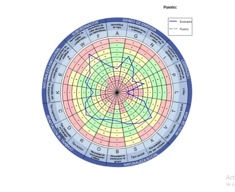 Para comprender un poco más, veamos un Ejemplo: En una empresa desean contratar a un supervisor de ventas y estos fueron los resultados que obtuvo el postulante: Según la gráfica podemos observar que en la dimensión de grado de energía se encuentra aceptablemente debido a que logra interesarse por el trabajo intenso y se compromete con la realización de sus tareas, sin embargo, para el puesto la dimensión que debe desarrollar es la del liderazgo debido a que no tiene suficiente confianza en sí mismo como líder y puede llegar a basilar al momento de tomar decisiones.